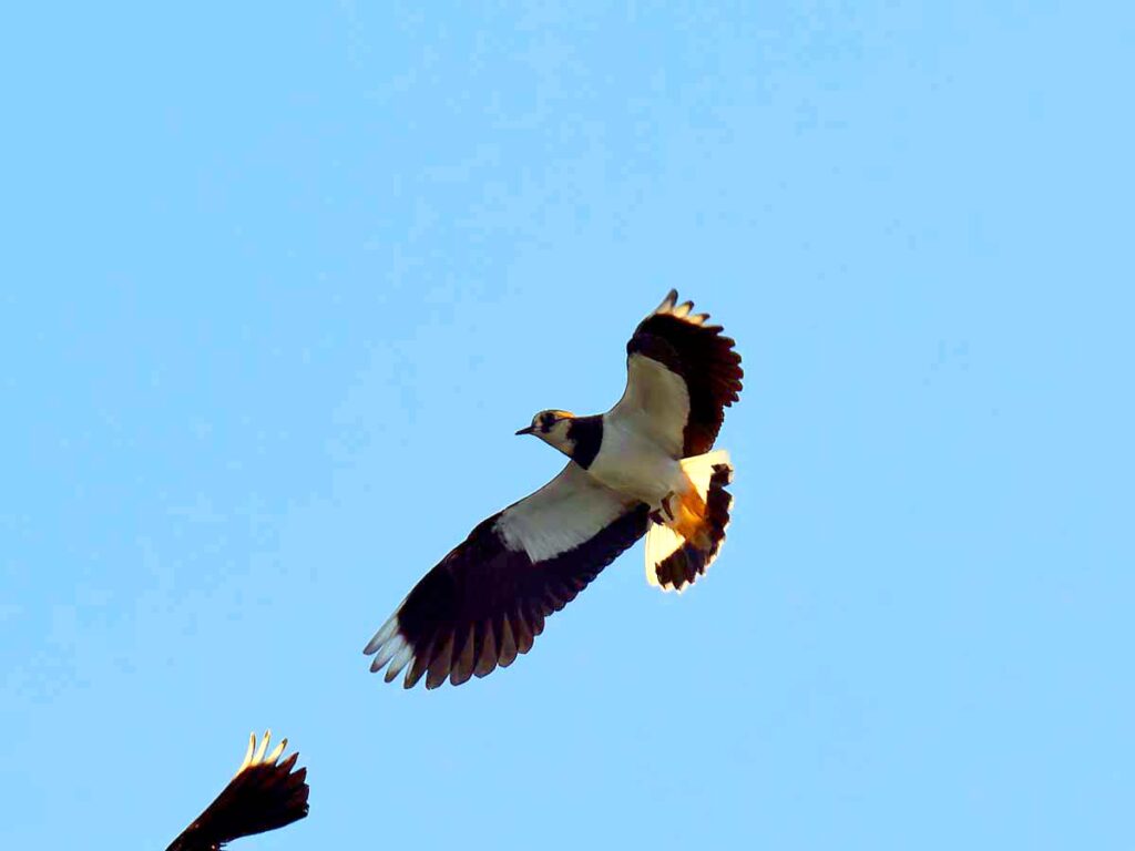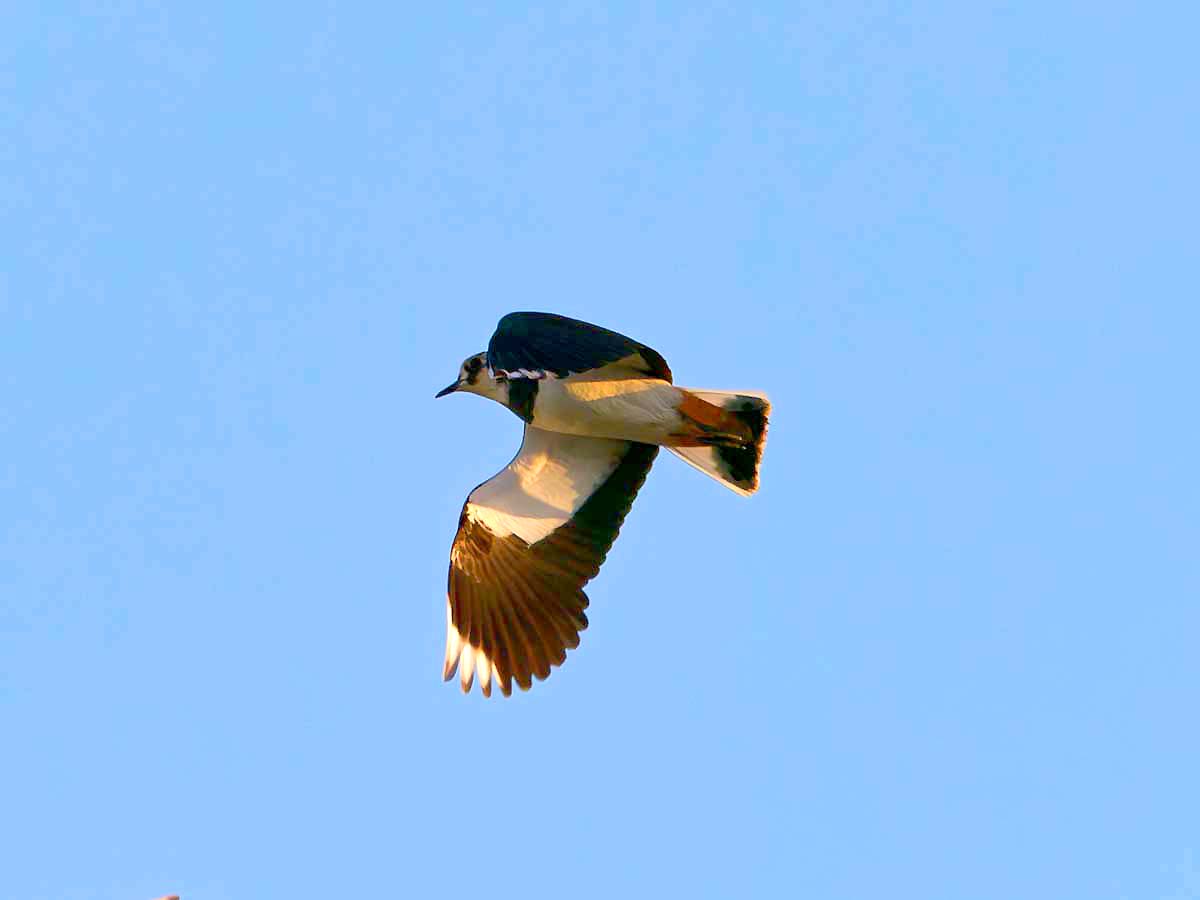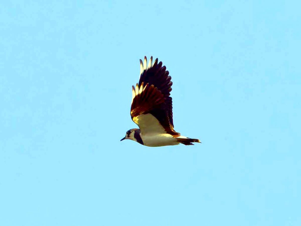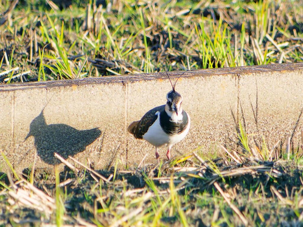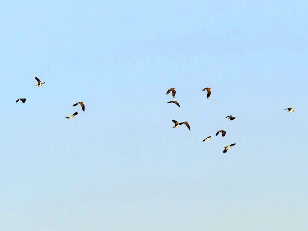 一昨日@虎さんと行った時はホオアカ目当てだったが、不発に終わった。タゲリは行かなかった。今日、@鶴は淀川へベニマシコを撮りに行ったが又も不発。其処で、「三島江ではホオアカもベニマシコ♂♀もでてるよ」と聞いて、うっかり足を延ばしてしまった。自転車のバッテリーは予備を載せていたのだ安心だった。当然三島江へ行く前に柱本でタゲリを覗いたが、残念こちらも不在だった。ま、三島江でホオアカが撮れれば上々だわ…、と現地に着いたが、言われたポイントでは無しのつぶて…。やっぱりいつものポイントかな?とのぞいたら2人がしきりにカメラを向けている。良かったぁ、と一緒に撮ってみたが、「??、これホオアカじゃないですね?」お二人曰く、「今頃まだノビタキって珍しいでしょ!」確かに…、急にテンションが下がった。が、そのカメラマン、顔見知りだった。「これからタゲリに行く」というので、後で行くからと答えて、ベニマシコ♂♀を探したが、これも無しのつぶて…。ことごとく裏目に出るか…、しかしメールが入って、「タゲリ居ます」地図までついていた。良かった、しかしいい加減疲れてきたなぁ。頑張って柱本へ戻るとかなりの数が「居た!」喜んで次々に撮ったがすぐに飽きて、「早く飛ばないかなぁ…」時刻は4時過ぎ、ソワソワし出したかと思うと、個々に羽を広げ出し、バラバラっと飛び出した。畑の上を旋回し、徐々に屋根を越えて夕空の堤防の方へと飛んでいった。かなりゆったりとした飛び方で、全部で14羽。わぁ、これで今日は満足! 帰り路は体力の限界…だった。