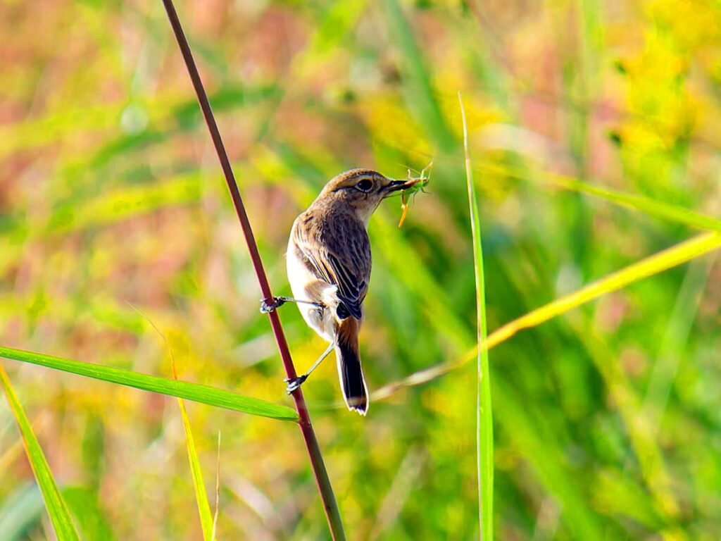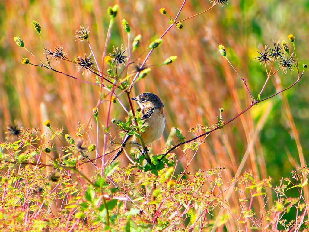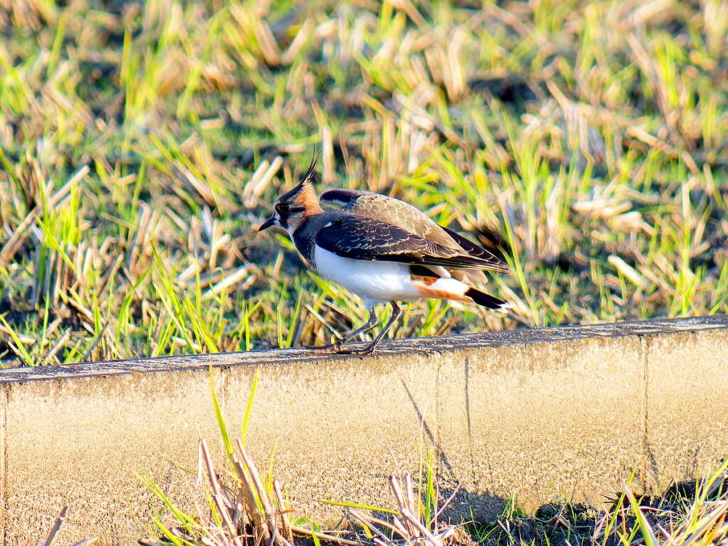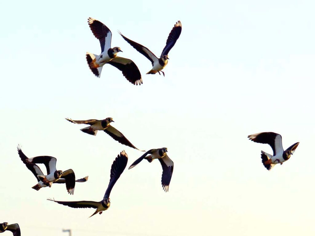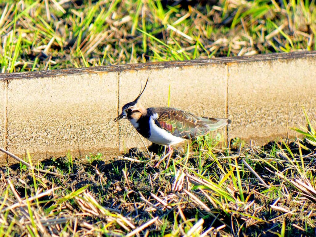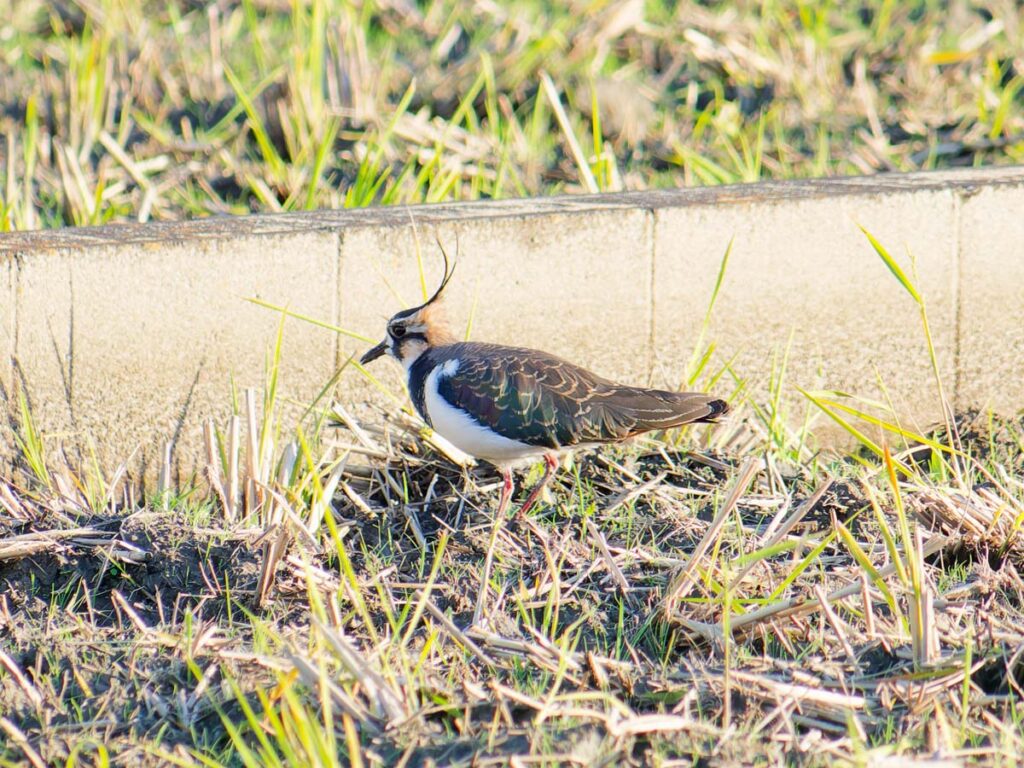 一昨日@虎さんと行った時はホオアカ目当てだったが、不発に終わった。タゲリは行かなかった。今日、@鶴は淀川へベニマシコを撮りに行ったが又も不発。其処で、「三島江ではホオアカもベニマシコ♂♀もでてるよ」と聞いて、うっかり足を延ばしてしまった。自転車のバッテリーは予備を載せていたのだ安心だった。当然三島江へ行く前に柱本でタゲリを覗いたが、残念こちらも不在だった。ま、三島江でホオアカが撮れれば上々だわ…、と現地に着いたが、言われたポイントでは無しのつぶて…。やっぱりいつものポイントかな?とのぞいたら2人がしきりにカメラを向けている。良かったぁ、と一緒に撮ってみたが、「??、これホオアカじゃないですね?」お二人曰く、「今頃まだノビタキって珍しいでしょ!」確かに…、急にテンションが下がった。が、そのカメラマン、顔見知りだった。「これからタゲリに行く」というので、後で行くからと答えて、ベニマシコ♂♀を探したが、これも無しのつぶて…。ことごとく裏目に出るか…、しかしメールが入って、「タゲリ居ます」地図までついていた。良かった、しかしいい加減疲れてきたなぁ。頑張って柱本へ戻るとかなりの数が「居た!」喜んで次々に撮ったがすぐに飽きて、「早く飛ばないかなぁ…」時刻は4時過ぎ、ソワソワし出したかと思うと、個々に羽を広げ出し、バラバラっと飛び出した。畑の上を旋回し、徐々に屋根を越えて夕空の堤防の方へと飛んでいった。かなりゆったりとした飛び方で、全部で14羽。わぁ、これで今日は満足! 帰り路は体力の限界…だった。