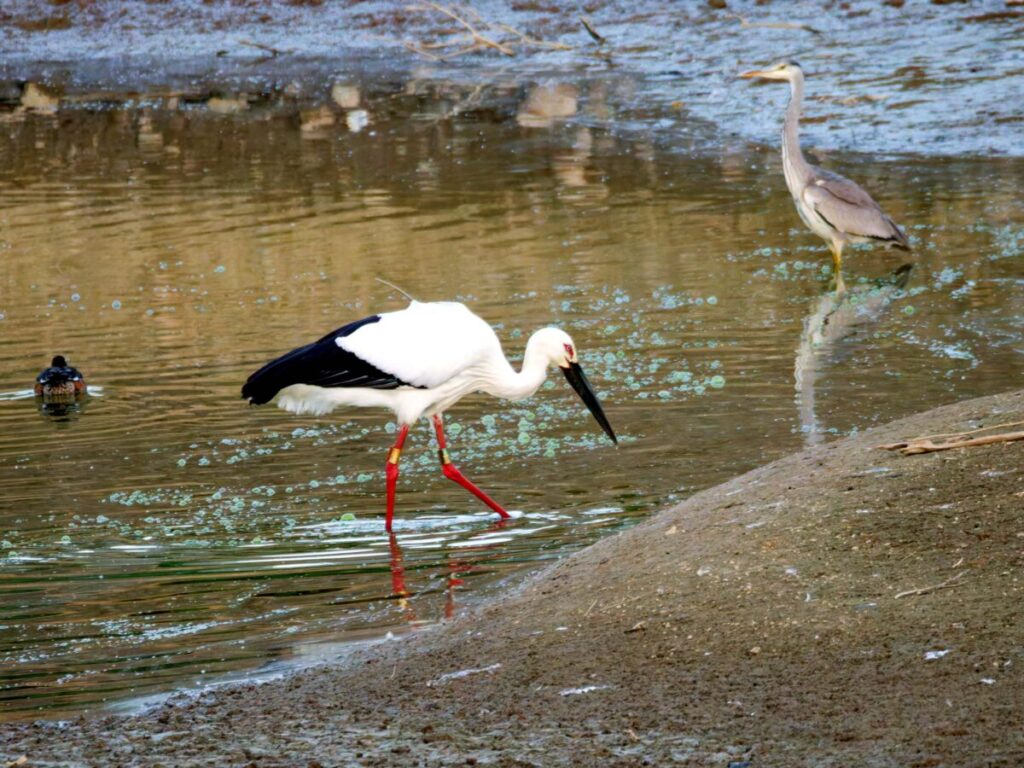 山を下りて和歌山にみかんを買いに行くついでに寄った池で、コウノトリ。