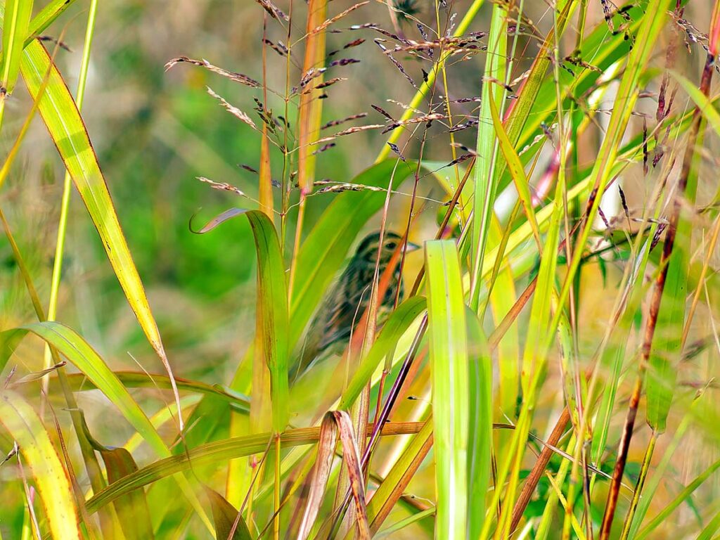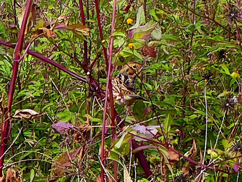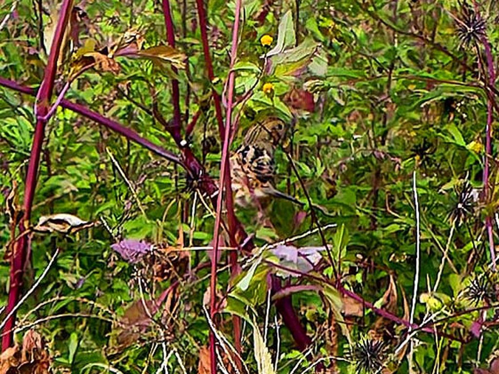 ホオアカ? 草の中に入った辺りを撮ったら中に写っていた。ボケボケだが多分…。