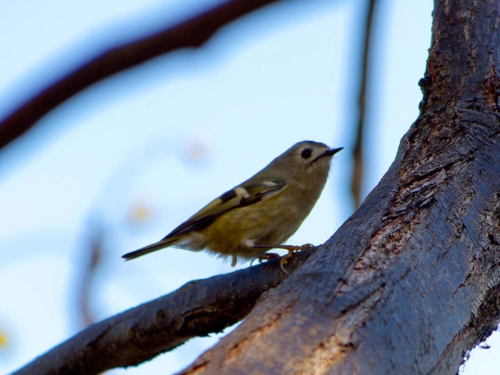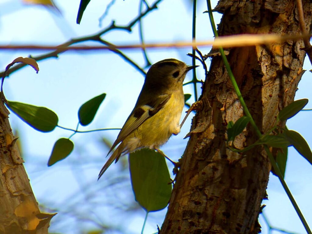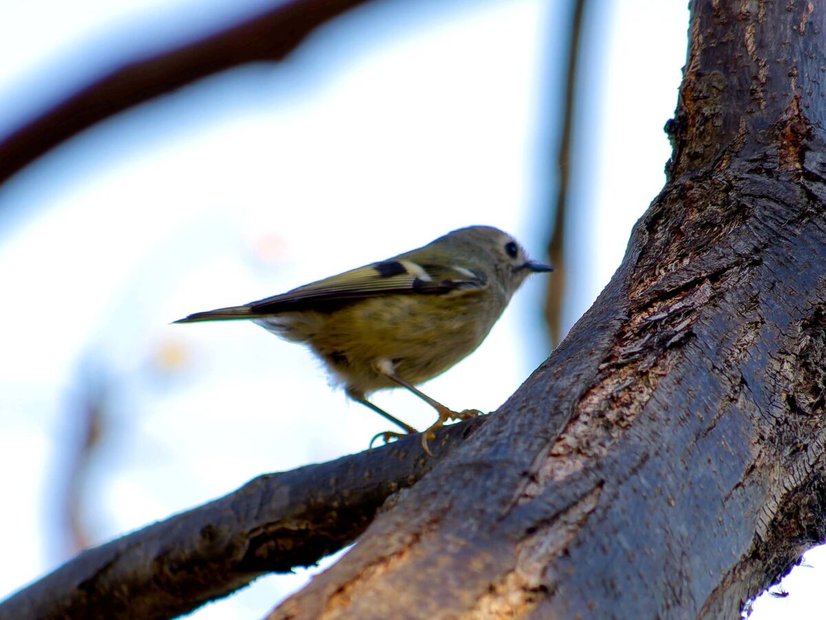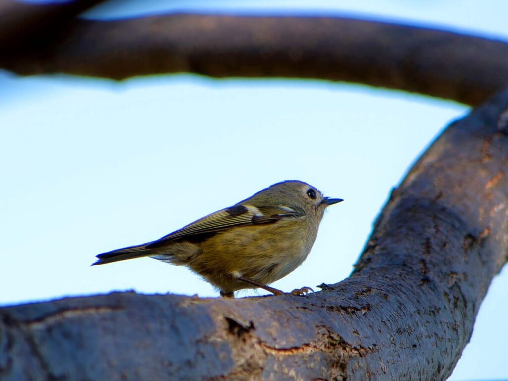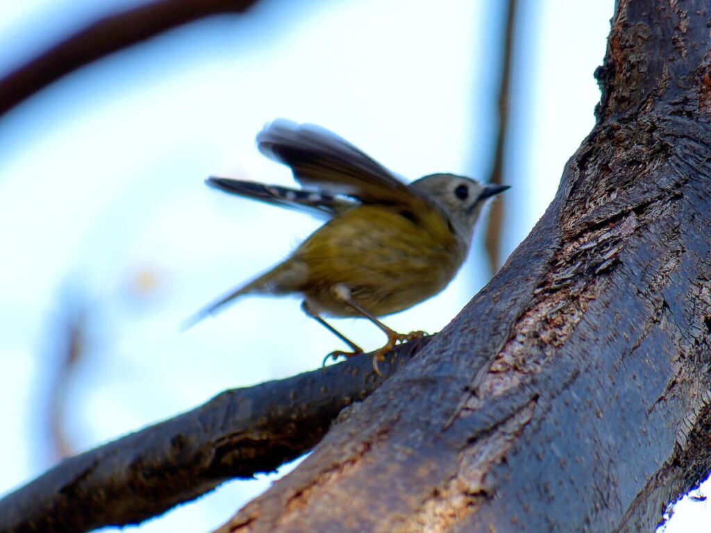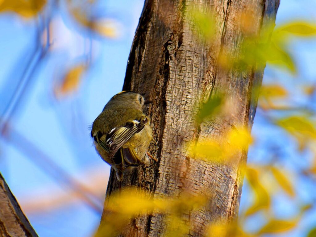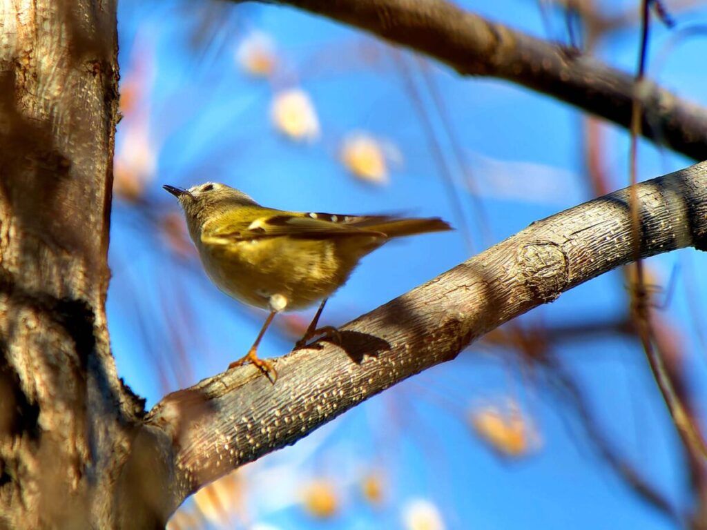少し遠いが頑張って自転車で行ったら、河原には延々と松の木が並んでいる。なるほどこれはキクイタダキにもってこいの所だ。ポイントにはカメラマンがチラホラ。「居るよ、さっきまで撮り放題だった」う~ん、遅かったかな…?ところがすぐに又カメラマンが動き出した。おぅ、居る!皆さんについてあっち・こっちと動くうちに要領が分かってきた。多分3.4羽位かな、だんだん目が慣れてきて、頭央の黄色いご紋がチラチラ…。最後に河岸の雑木の方へ移動、皆さん大喜び。松の木よりはるかにきれいに撮れるとか…、私はカメラの設定がうまく合わず、何とももったいない結果になってしまった。修正しきれない画像がいっぱい…。