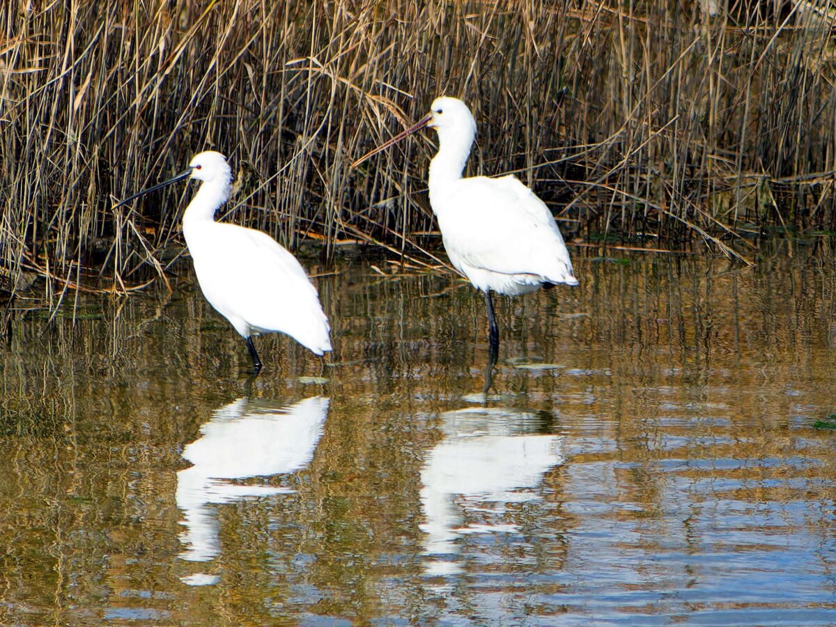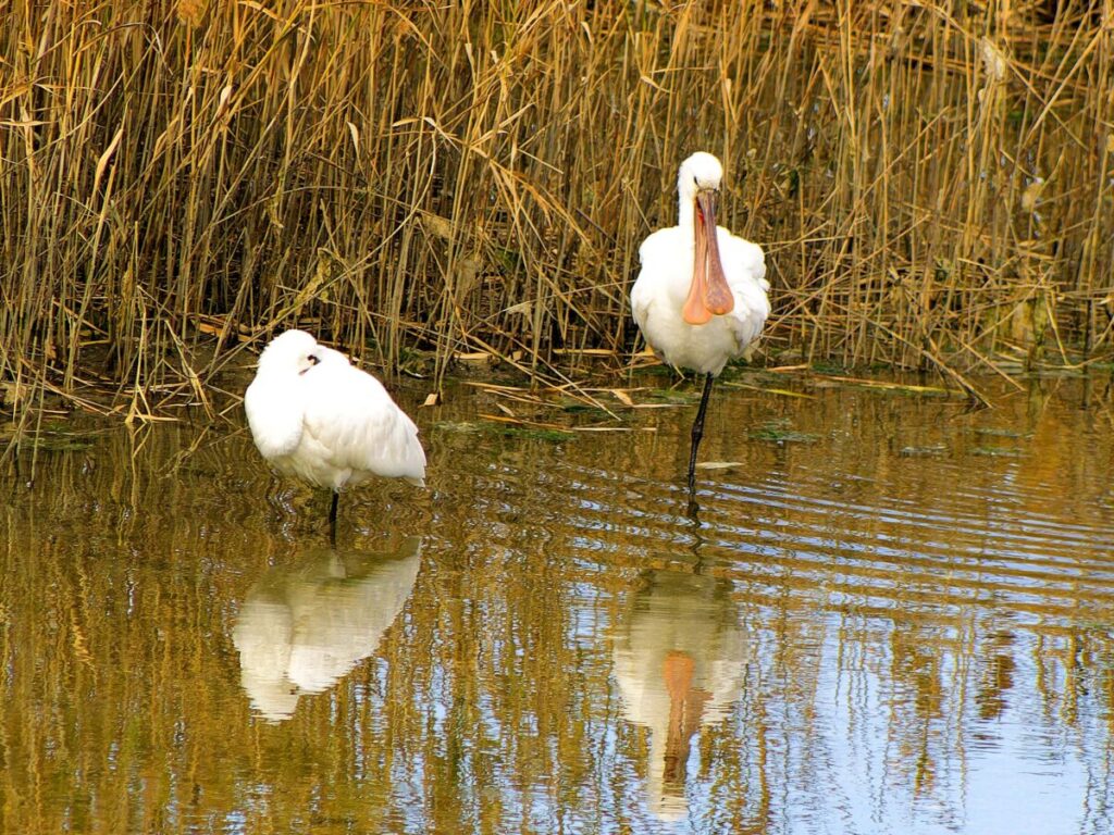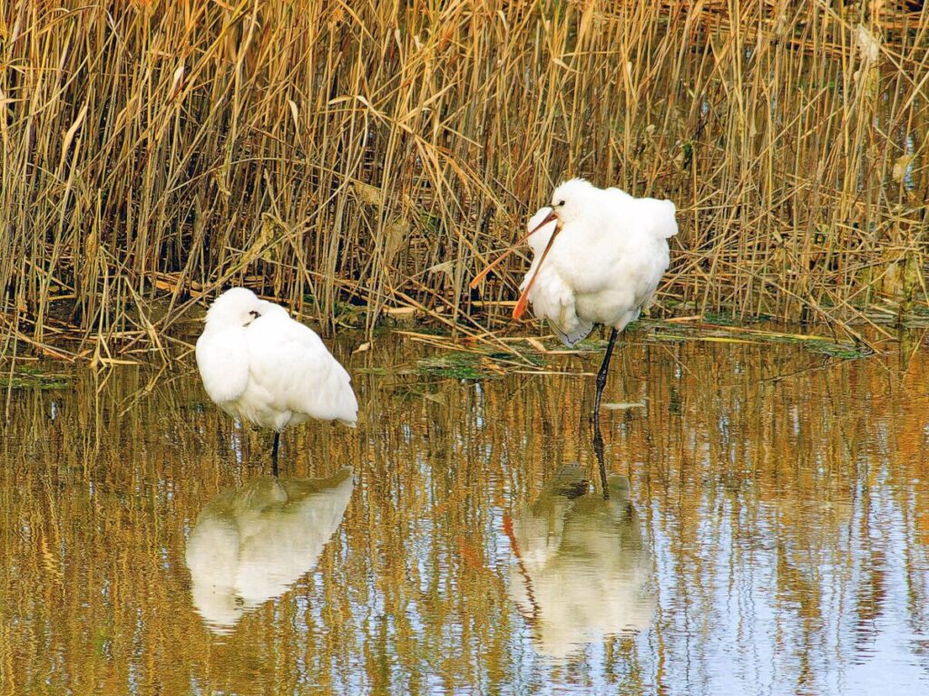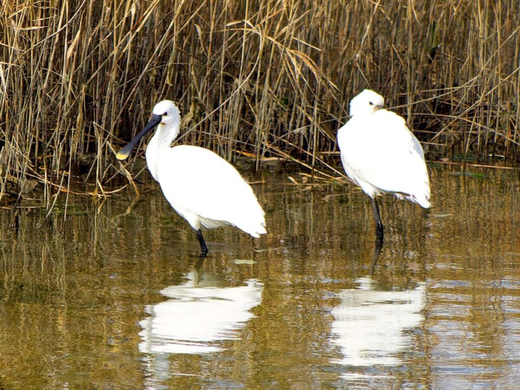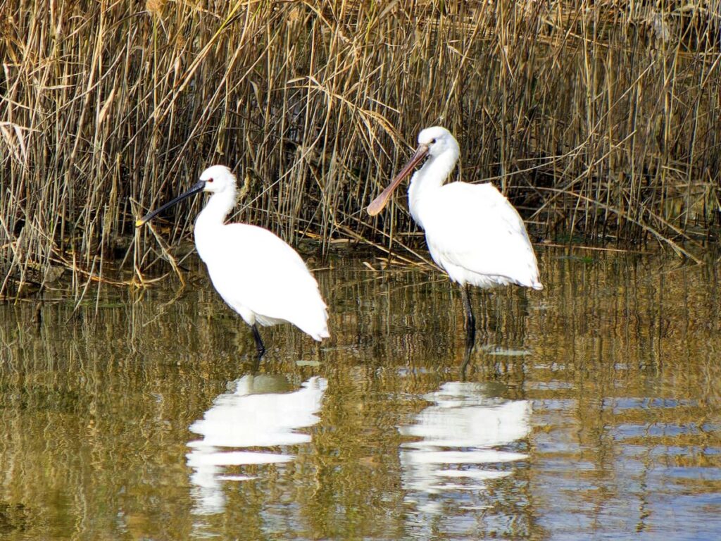 ヘラサギ 1羽は南池に居た。嘴が肉色なのは若いのかな?