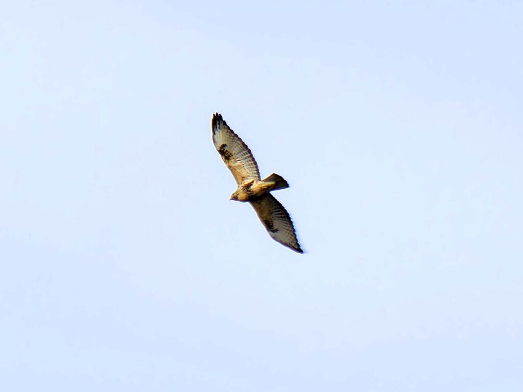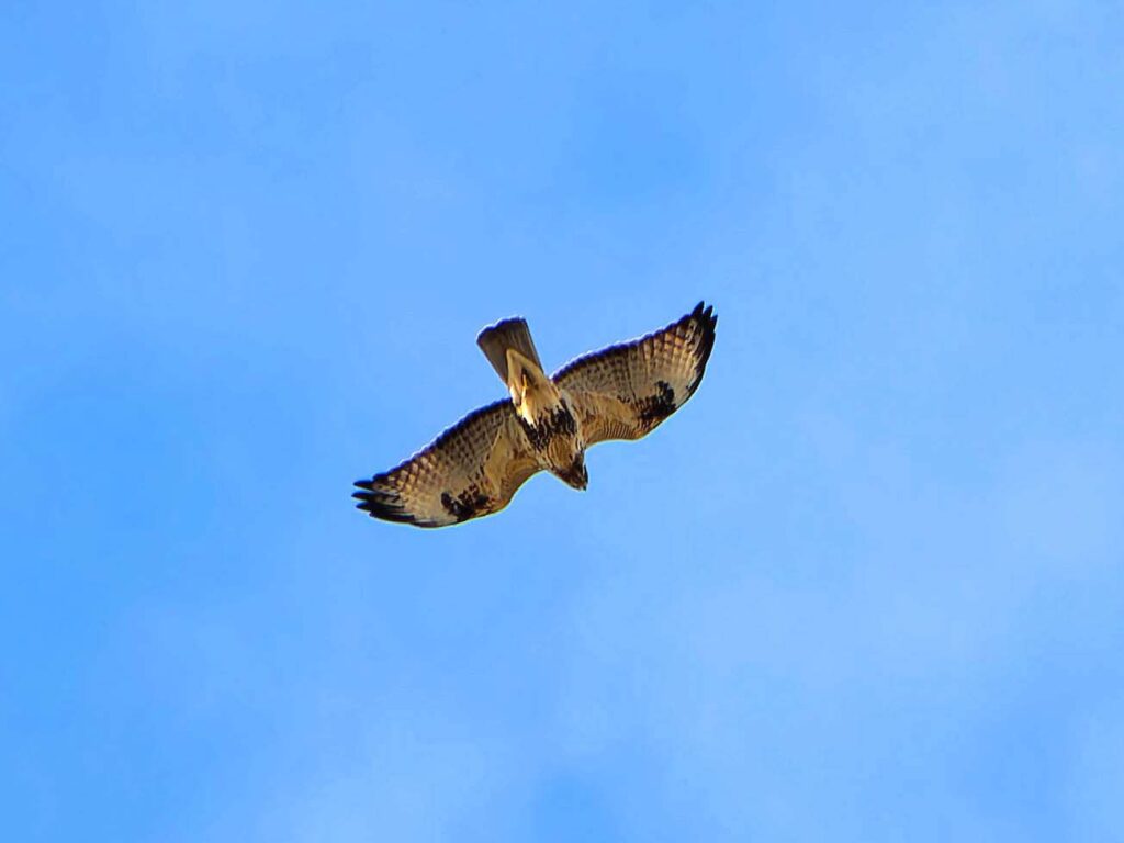 野鳥園を出ての帰り道、ノスリが頭上真上に飛んでいた。