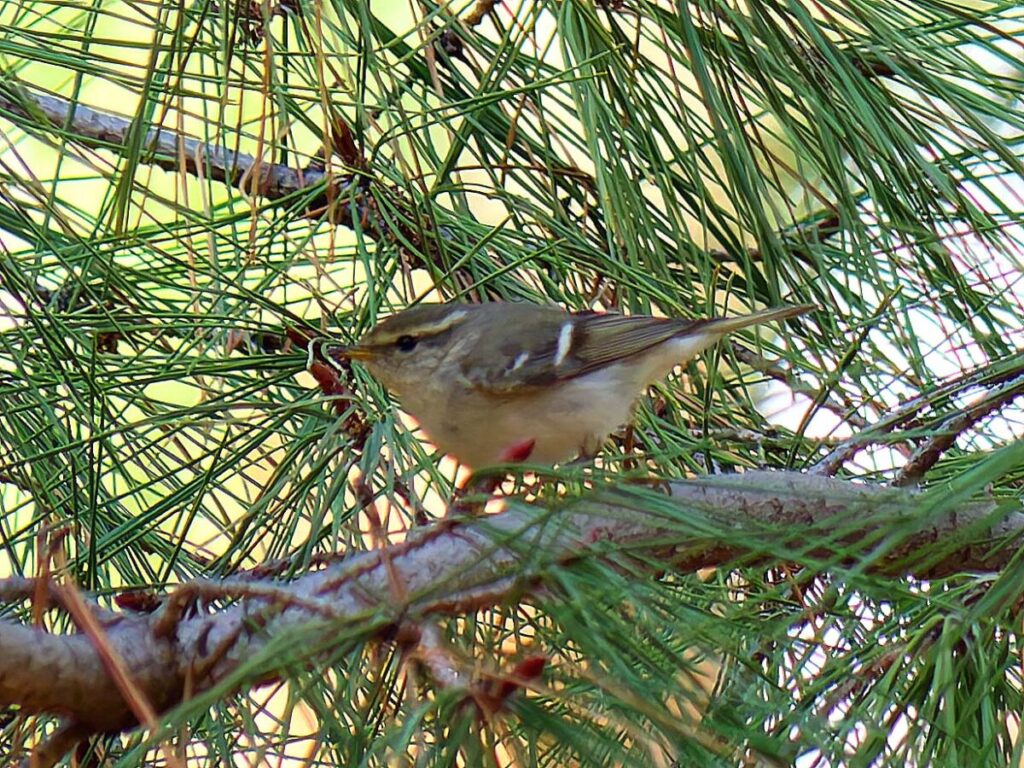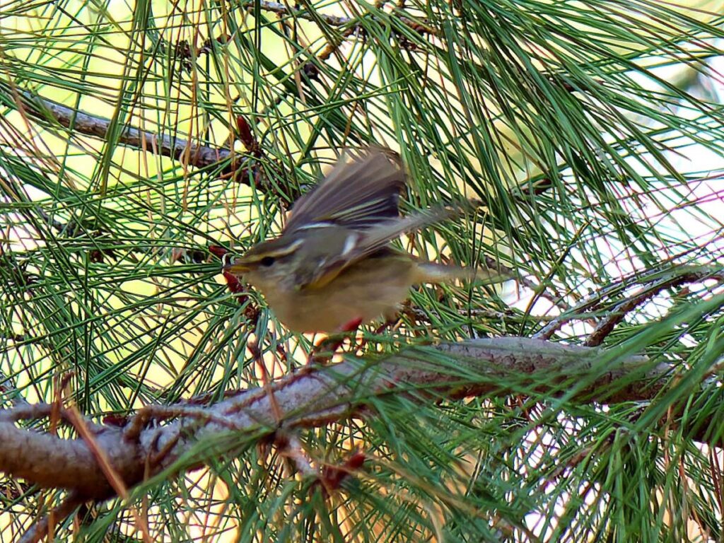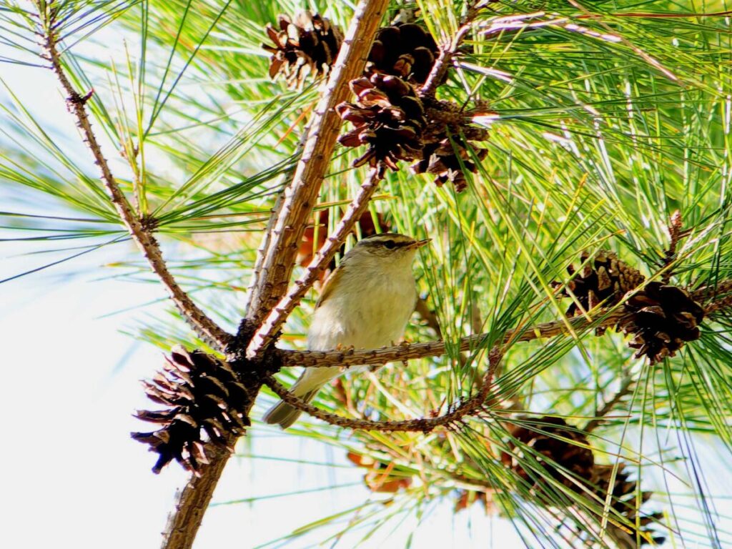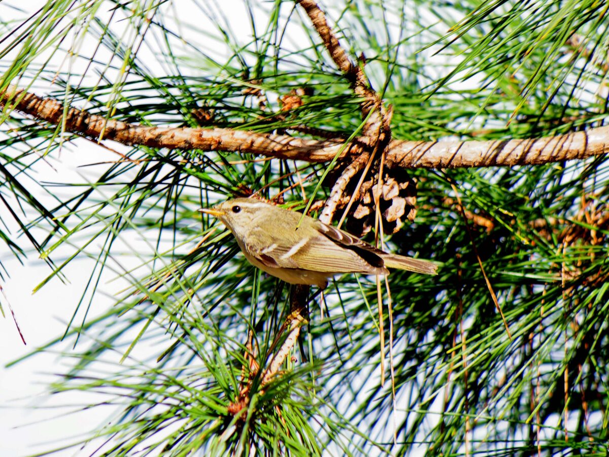 キマユムシクイ前回行ったのは10日前、手強いのは同じだが、最近は午前中は出ず午後3時頃から出るようになったと聞き、或いは抜ける前兆かもと念のため行ってみた。着いたのは午後2時前、先に、場所が変わったらしいニシオジロビタキの方へ行ったが要領を得ず、少し早いがキマユムシクイの方へ行った。カメラマンは一人だけ、意外、午後1時に1度出たらしい。早いねとしゃべりながら探すと又見つけて下さった。午前中は出なかったらしく、皆さん帰ってしまったとか、鳥のことだから何時出ても不思議ではないわけで…。相変わらず撮れたと確信がないまま探していると3時になると俄然人が増えてきて、見つかるのも多くなってきた。あっちこっちと追いかけるうちあっという間に4時近くになっていた。今日はカーブスに行く日なので帰る前にもう一度ニシオジロビタキの方へ寄ると誰も居ず、偶然噴水近くの木に止まっているのを発見。良かったぁ、これで今日は完璧だ。ほんの15分位で切り上げて、急いで家に帰った。