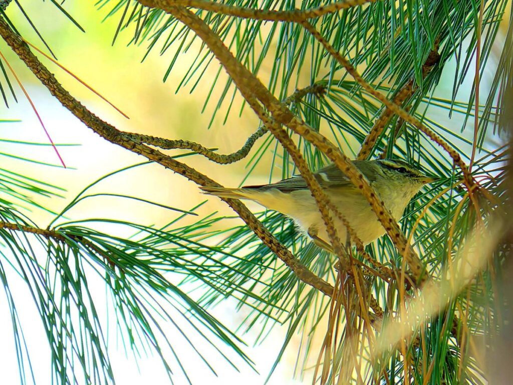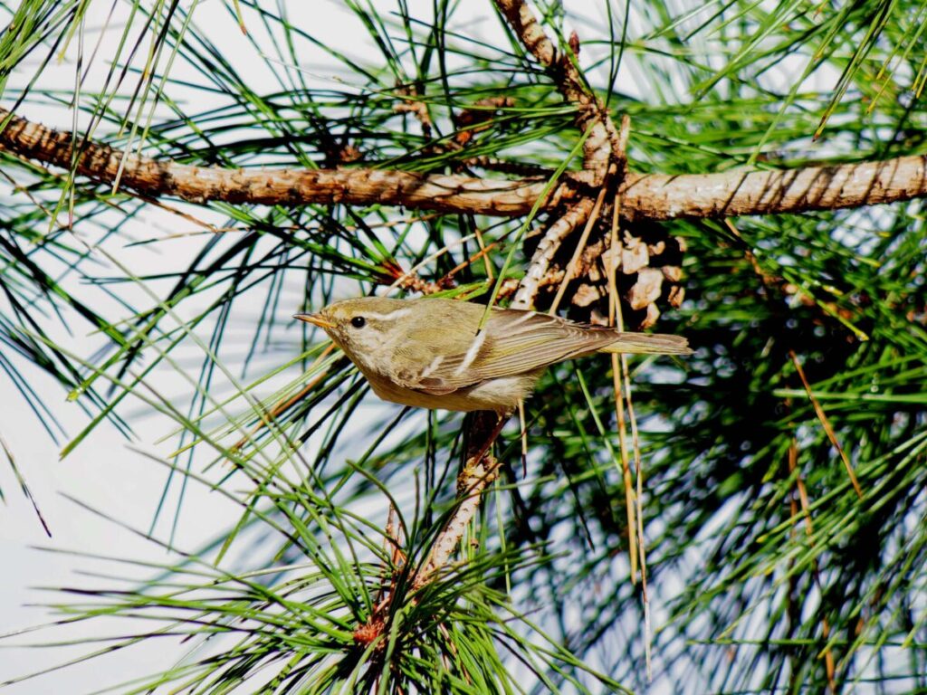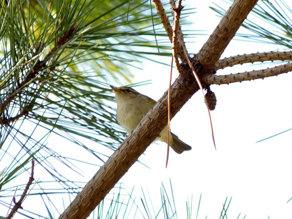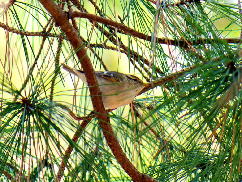 キマユムシクイ前回行ったのは10日前、手強いのは同じだが、最近は午前中は出ず午後3時頃から出るようになったと聞き、或いは抜ける前兆かもと念のため行ってみた。着いたのは午後2時前、先に、場所が変わったらしいニシオジロビタキの方へ行ったが要領を得ず、少し早いがキマユムシクイの方へ行った。カメラマンは一人だけ、意外、午後1時に1度出たらしい。早いねとしゃべりながら探すと又見つけて下さった。午前中は出なかったらしく、皆さん帰ってしまったとか、鳥のことだから何時出ても不思議ではないわけで…。相変わらず撮れたと確信がないまま探していると3時になると俄然人が増えてきて、見つかるのも多くなってきた。あっちこっちと追いかけるうちあっという間に4時近くになっていた。今日はカーブスに行く日なので帰る前にもう一度ニシオジロビタキの方へ寄ると誰も居ず、偶然噴水近くの木に止まっているのを発見。良かったぁ、これで今日は完璧だ。ほんの15分位で切り上げて、急いで家に帰った。