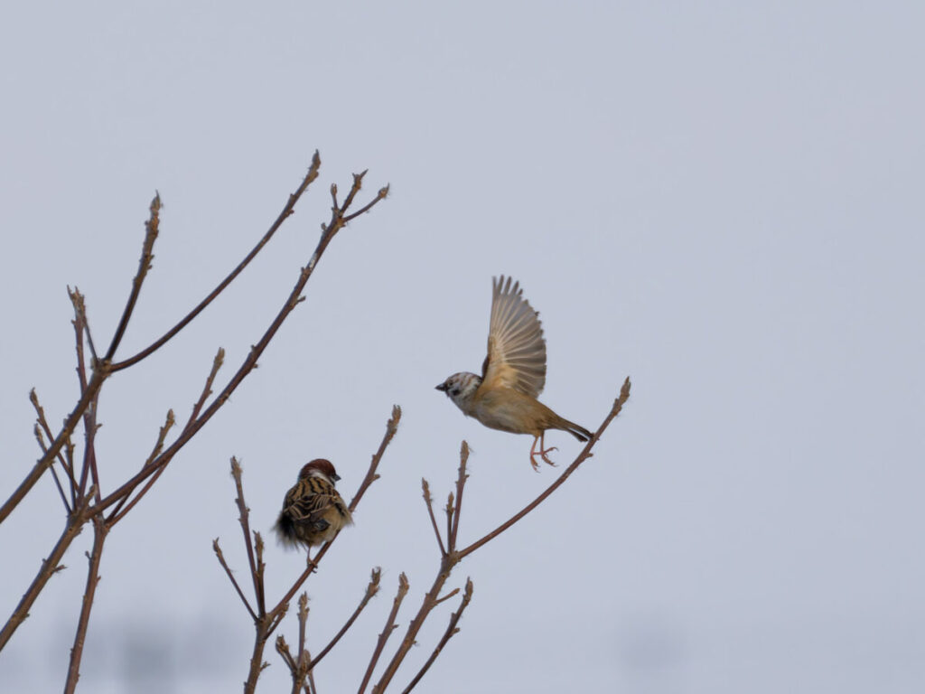 他には頭が白いスズメ