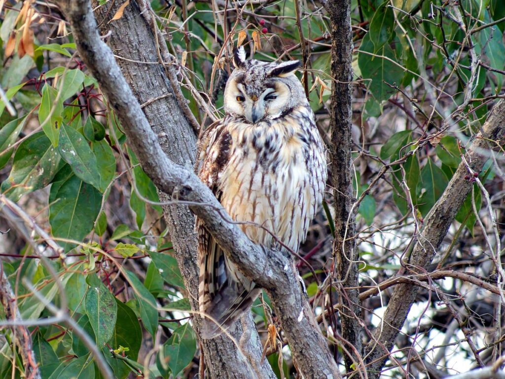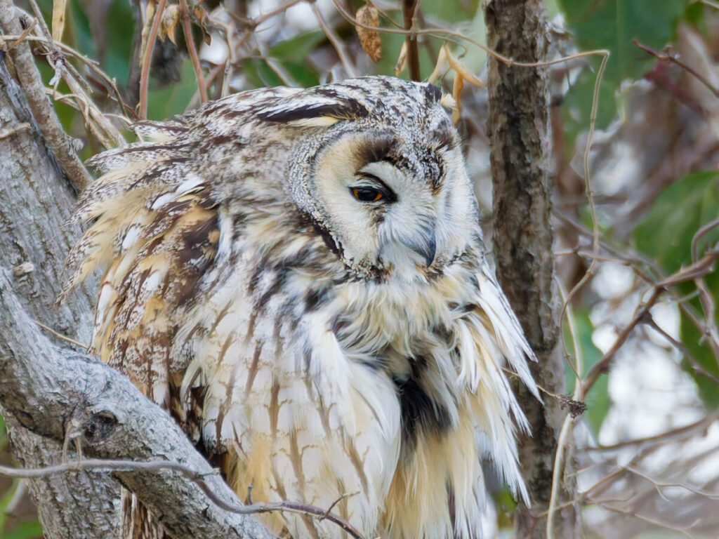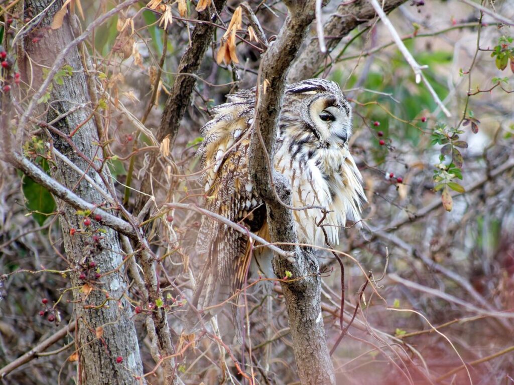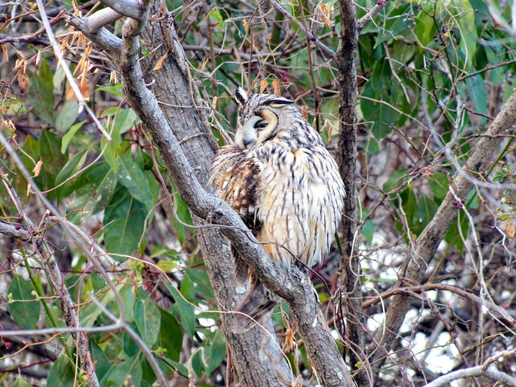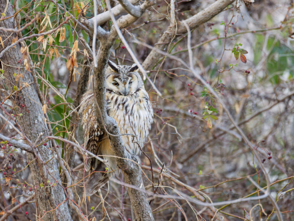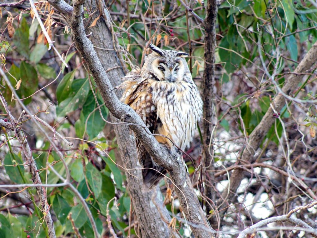 トラフズクの場所に移動。全身が見えるところにとまってくれていた。