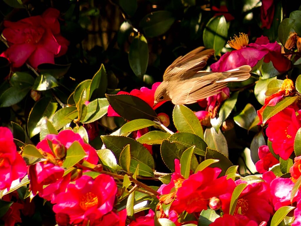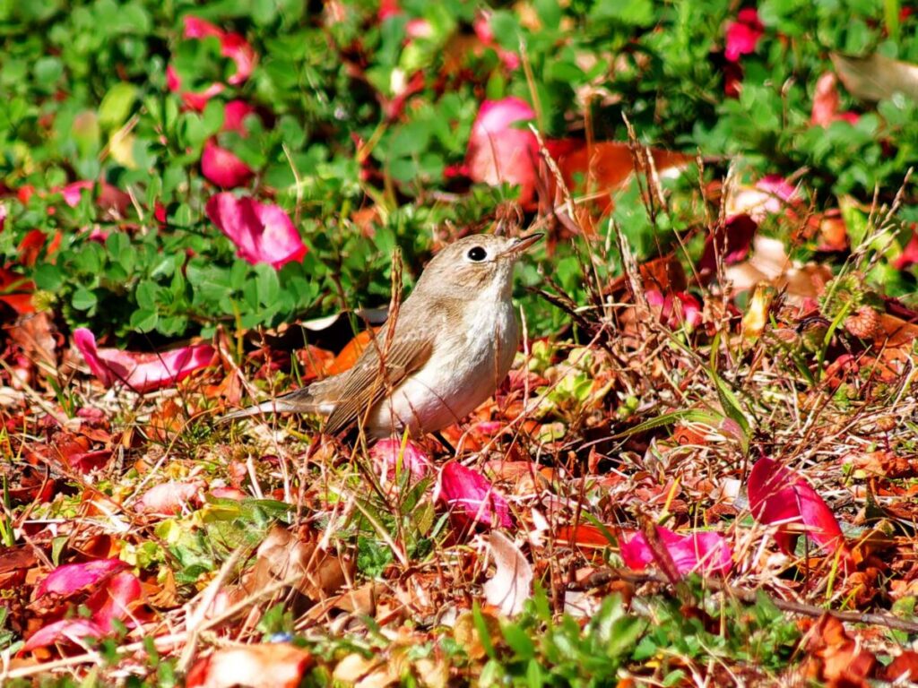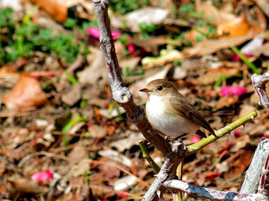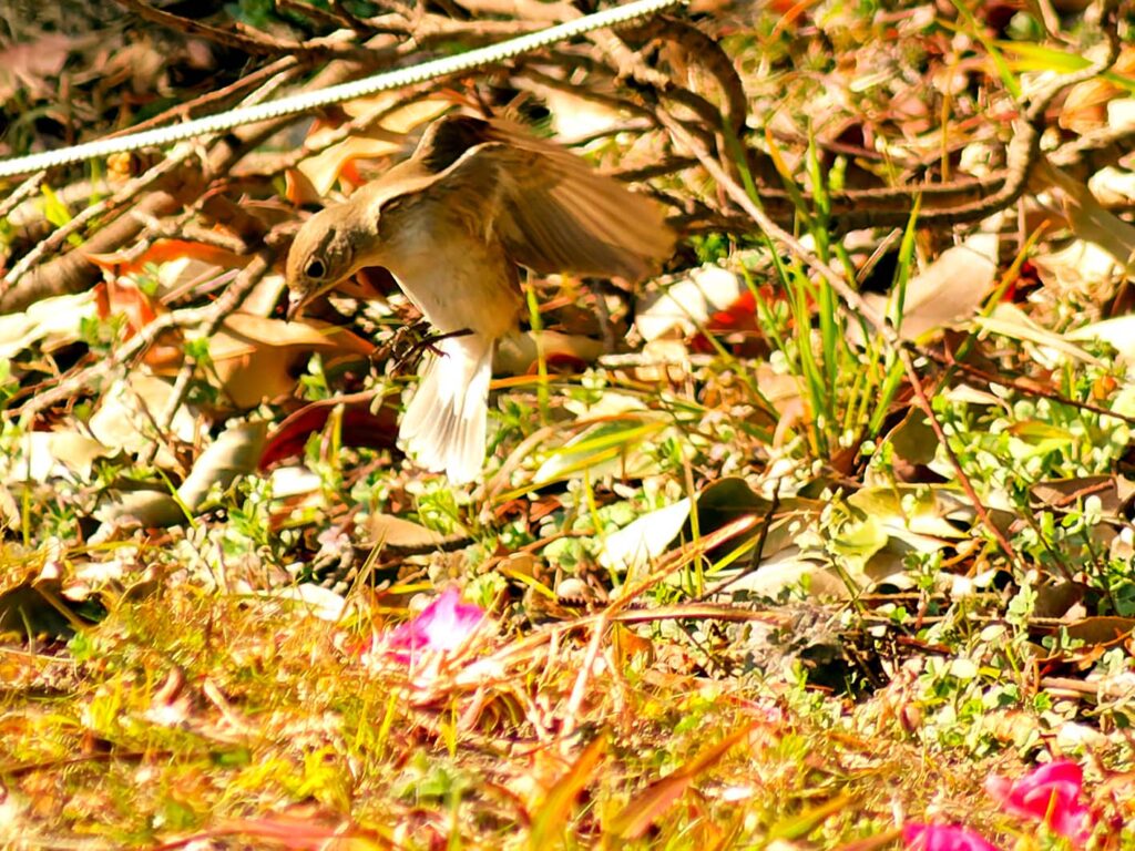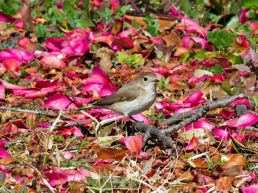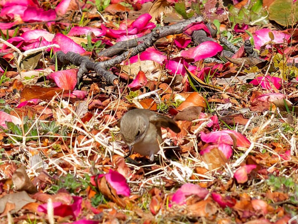 昨年大晦日に一度行った時は花絡みを撮れなかったニシオジロビタキ、久し振りに行ってみた。一人いたカメラマンはすぐに帰ってしまい、一人になってしまった。周りは人気もなく、鈍くさい私に歯が立つかな?と心細かったが、終わってみれば返って楽しめた。一番に花びら絨毯に降りる姿を撮りたくて何度も挑戦したがうまく行った気がせず2時間近く粘ったが、帰って調べると思いの外良い場面がいっぱい撮れていて大満足。これからは梅、桜の季節へと居続けてほしい。