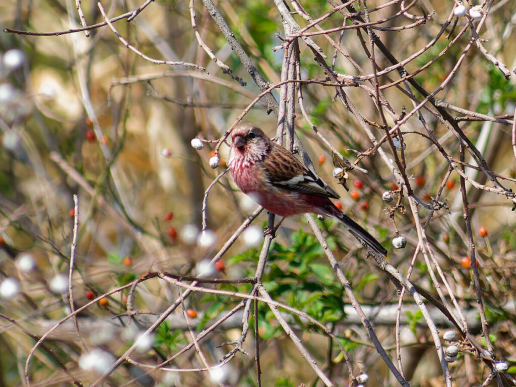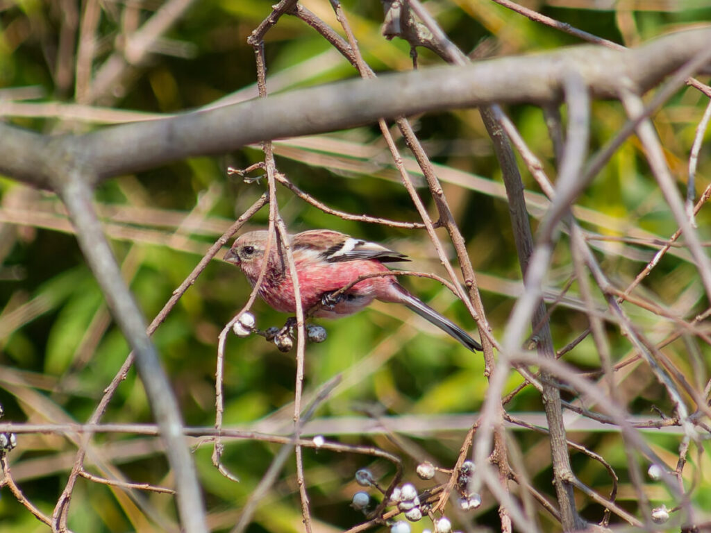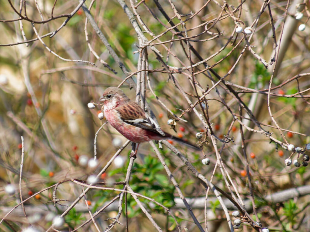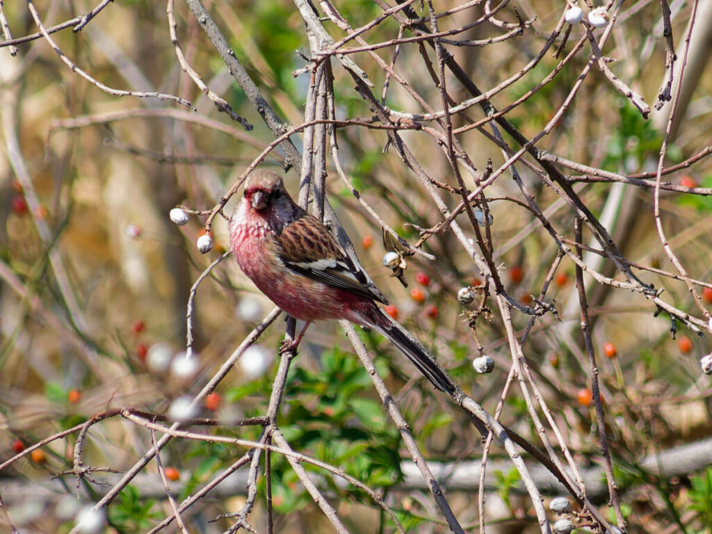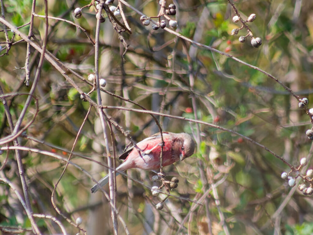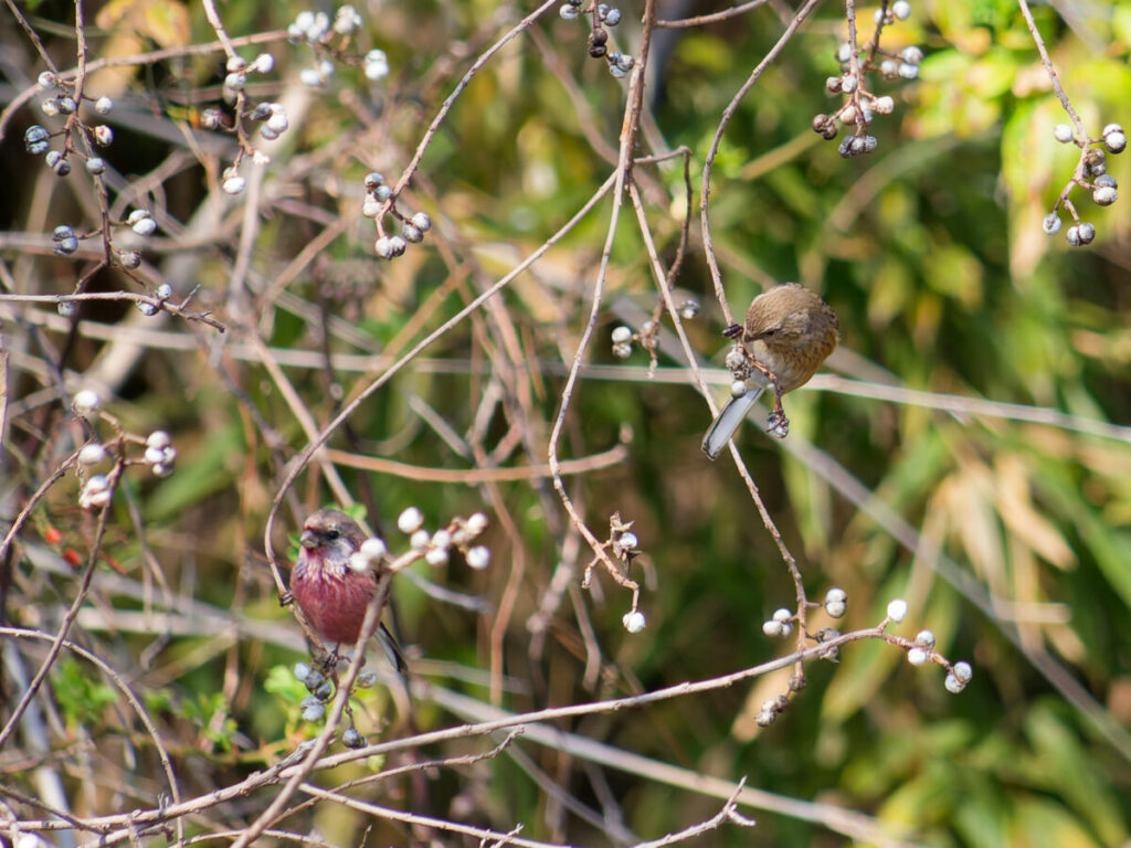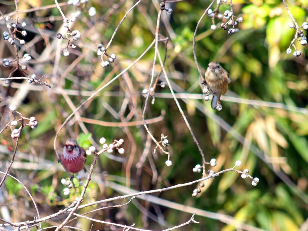ベニマシコ♂ 若と成鳥の2羽が居るみたいだが、判別は…?