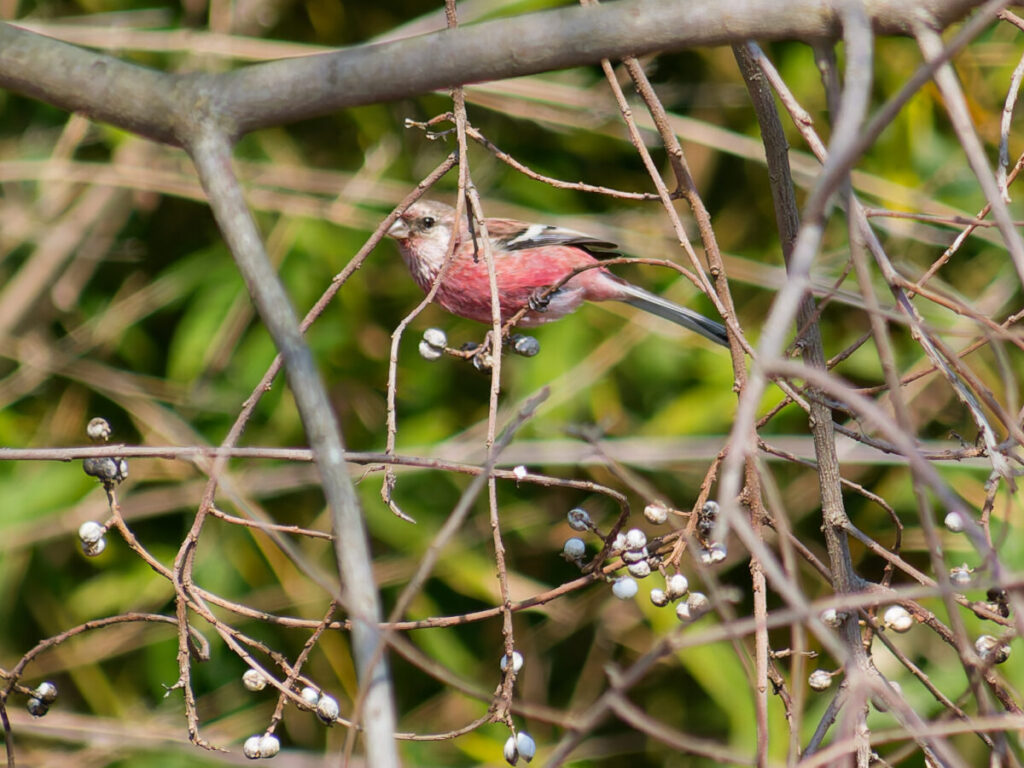 急に暖かくなった3連休の初日、きっとベニマシコが出てるだろうと何故か確信して行ってみた。着いたのは10:30、聞くとさっき3羽出ていたらしい。あらら、残念!でもこの陽気ならきっとまた出るだろうと、気長に待つ。その間にヒクイナが出てくれた。今冬3度目の出会いでうれしい。本命のベニマシコは12時頃にかなり長く出てくれてラッキー。数人のカメラマンは納得で帰ってしまい、私は撮れた画像をチェックしていたら又出てきた。この陽気ならさもありなんと予想が当たってうれしい。ハイタカも出てきて頭上を悠然と飛び、ミサゴも飛ぶなど、久々に活発な鳥達の動きに会えて、本格的な春の到来を肌で感じた今日の鳥撮りだった。