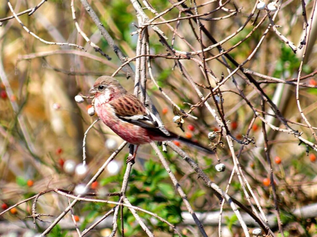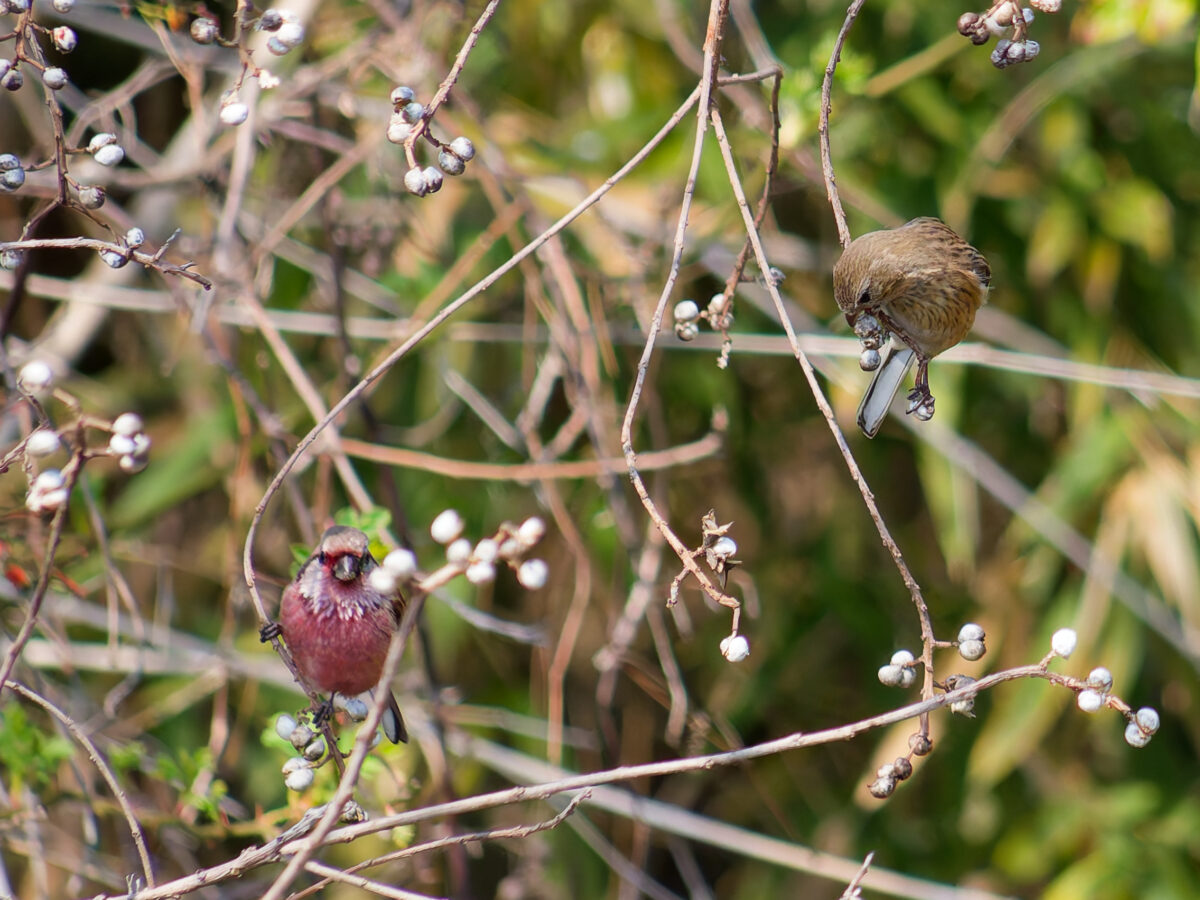 ベニマシコ♂ 若と成鳥の2羽が居るみたいだが、判別は…?
