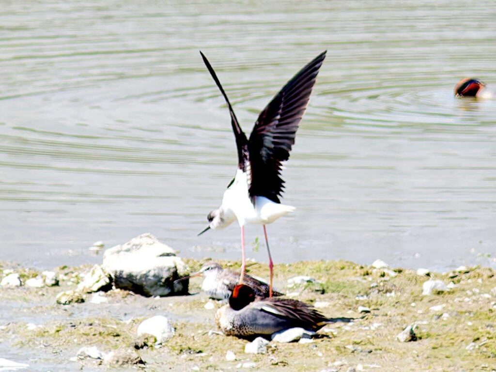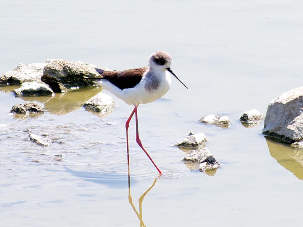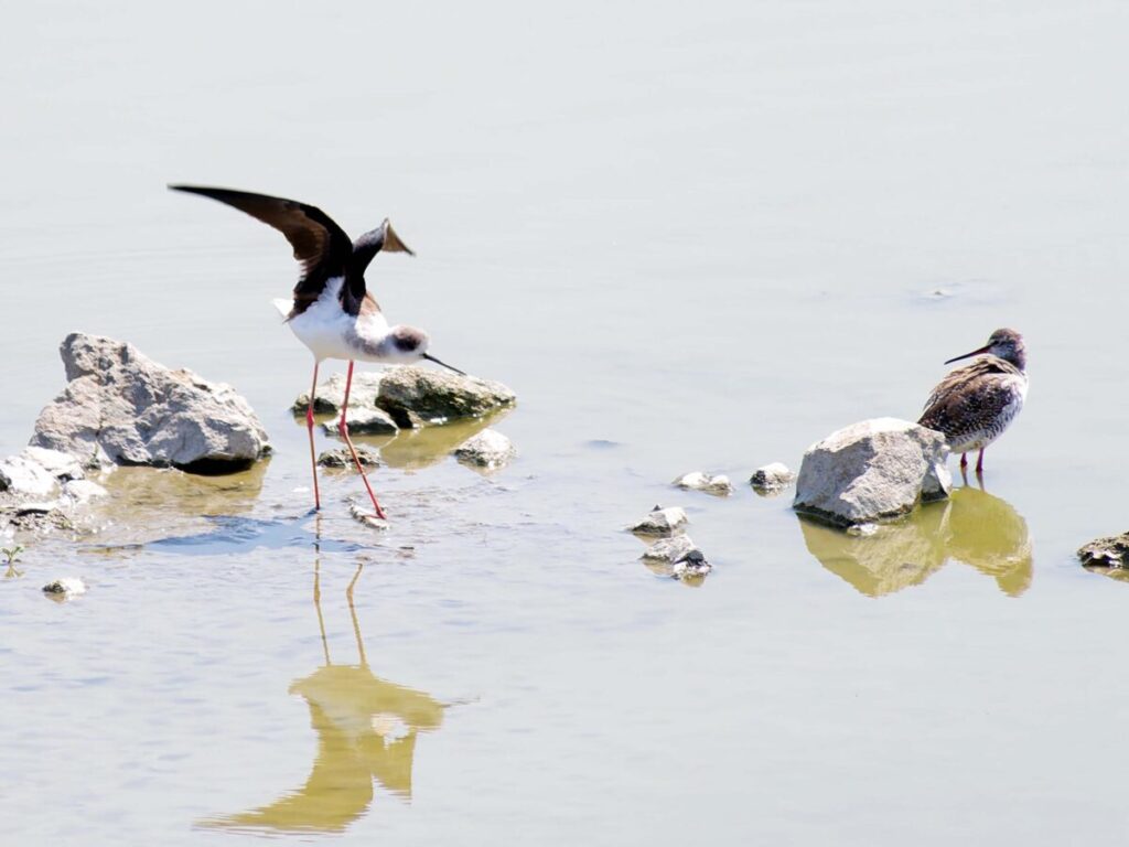 セイタカシギ ここではツルシギと一緒にいることが多いみたい…。