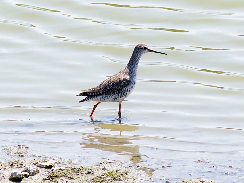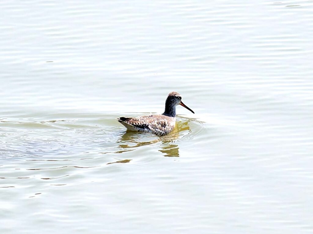 ツルシギ 今回の本命、毎年来るシギだが、夏羽で真っ黒に変身するのが人気だ。
