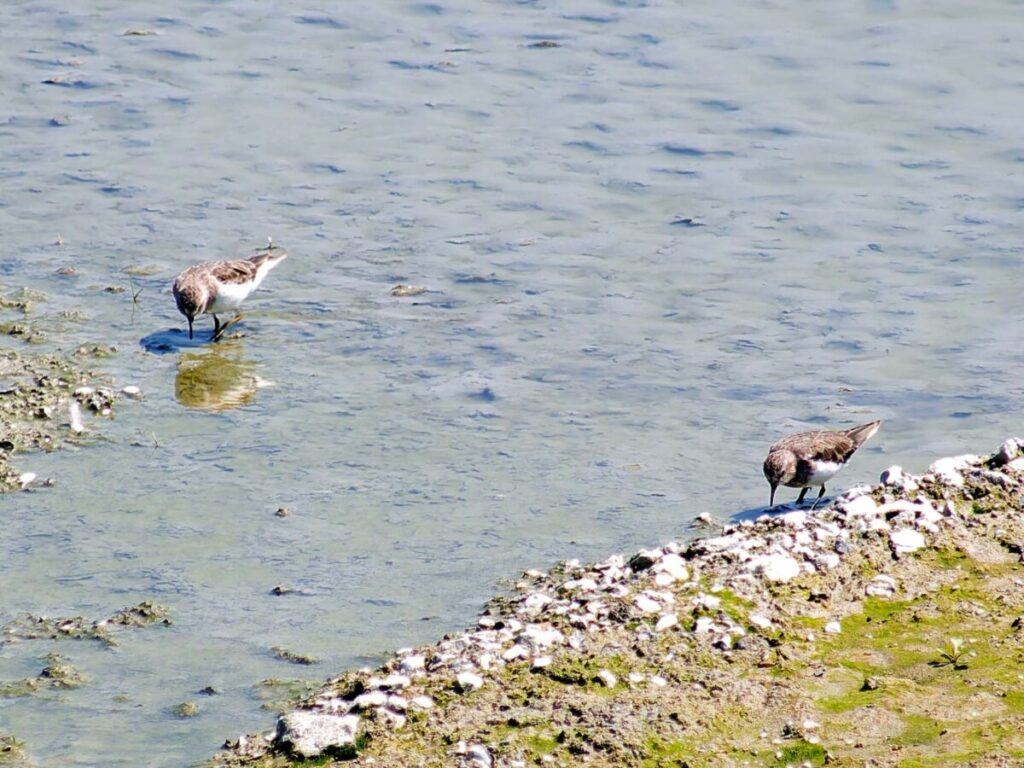 オジロトウネン 2羽 今回は遠くて特徴がイマイチ…。これでは脚の黄色さも分からない。😢