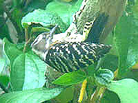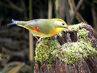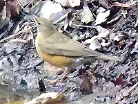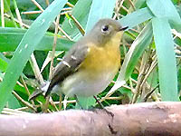 ![]() キヅタアメリカムシクイ・脇・頭央・尾の3箇所が黄色い。 |