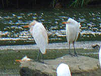 昨日江坂駅で自転車を撤収され、今日回収に行ったついでに久しぶりに淀川へ行った。柴島干潟をのぞいたが、最近は誰も行かないらしく、草が背丈以上に伸びて干潟が見れない。下流に回りこんでふと見ると白い鳥が中洲状の岩にびっしり。よく見るとアマサギの群れだった。数えたら全部で72羽。淀川でアマサギを見るのは珍しいし、これほどの大群は驚き。十三大橋の方では今秋初物のノビタキをゲット。何となく満足感に浸れたような・・・。 | |