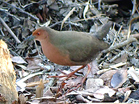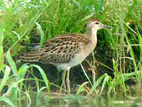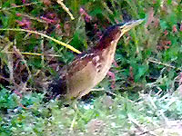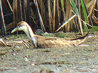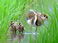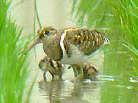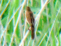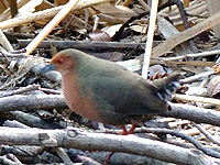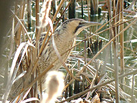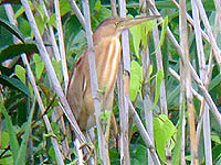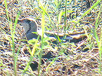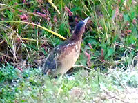 オオヨシゴイの大ニュース。何はともあれ昼過ぎ到着。午前は2度出て、行ってから飛んで近くに移動。ポイントが分からないまま夕刻、薄暗くなった時ヒョイと現れた。じっと立ちすくむ数分間。そのまますっと引っ込んでお仕舞。でも・・・証拠でも撮れたよぉ! 翌日は用事でパス。翌々日勇んで行ったがさっぱり。替わりに変なのが居るらしい。が、要領を得ないので昼過ぎ退散。ところが、ところがこれが大きな過ちだった。変なのはウズラクイナという日本初登場の超珍鳥。夕方5:10に出たという。更に翌日行ったけれど、とうとう出てはくれなかった。あぁ、返す返すも残念。 |