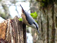 ![]() ゴジュウカラ特有の下向き姿勢。 カケスも数羽が群がって来た。 |