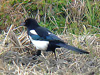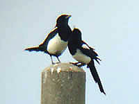 ![]() カササギがじっくりパフォーマンス。ファミリーかな?3羽で行動していた。 |