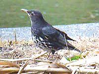 連日のムギマキはずれに意気消沈。これといった当てもなく自然と足はマイフィールドへ。行くとやはりアカゲラ狙いの人たちが数人。でもクロツグミの♀がよく出ているらしい。ならばと、定位置に待つとすぐに出た。暗いのでバッチリとはいかなかったが、証拠くらいには撮れたかな? | |