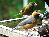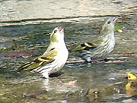 ![]() マヒワ ♀ 仲良く水呑み かなり濃い黄色の♂も居た |