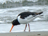 憧れのユキホオジロが居ると聞きながら、「行ったら見れた」の話を聞いてから、のこのこ出かけたらちょうど抜けた日だったようだ。夜行バスで現地に着いたのが10時前。聞くと朝7時半頃飛び立って帰ってこないとか。そのまま終日帰って来なかった。夜行バスでトンボ帰りのつもりなので、暗くなるまで粘ったがついに現れなかった。あぁ、一目見たかった・・・。 (すぐ側にはミヤコドリが居た。少し離れてクロガモ♂が居たのに、ユキホオジロに釘付けで撮りに行けなかった。こんなことなら・・・。) |