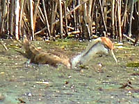 ![]() レンカク 夏羽が少し残っている?以前湿地を歩くのを見たことがあるけど、泳ぐんだね。 |
