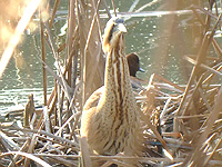 ヒクイナがパンを食べるとは・・・。 ヨシの中で動かないサンカノゴイ。 パンのおこぼれをアオジが・・・。 |