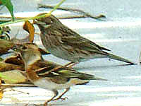![]() シロハラホオジロ?頭央線がありそうだけど・・・。(手前はアトリ) |