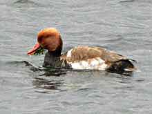 昨日のショックで、しばらく川西へ行く気がしない。ふと、また三田へ行ってみたら、偶然知り合いからキクイタダキの情報。私の手には負えないと知りながらもまぐれを期待して待つと、やはり回ってきた。ベテランカメラマン数人は撮れたと大喜び。私はすごすごと池を回ってベニマシコの場所へ移動。途中、背中の真っ白なホシハジロが気になって数枚カメラに収めた。ベニマシコはしっかり愛想してくれた。帰って写真を整理していて、ホシハジロがオオホシハジロに思えてきた。知人に聞いたら、嘴が黒くないのが引っ掛かるが、あとはオオホシハジロっぽいねという。交雑種だろうか? | |