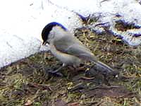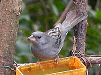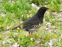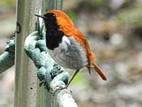 ![]() 毎年の餌付けは鳥たちに大人気。こちらはクロジ♂ |