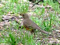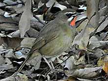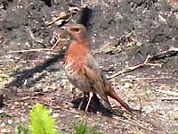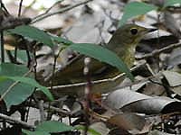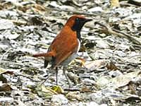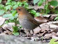 頭の黒いアカハラだから多分オオアカハラだろうということで、行ってみたら、すでに20人以上のカメラマン。とても警戒心が強く、あっという間に隠れてしまう。すぐ撮れるつもりで、別のところへ移動を予定していたが、結局夕方まで釘付け。皆が帰った後はよく出たが、すでに光線が弱く、昼間に比較的ゆっくり出た1回だけがなんとかましに撮れただけ。まったく人騒がせなオオアカハラだ。(以前名古屋でしっかり撮っているので、それほど騒ぐ気になれないが、もしまだなら、カリカリくるところ・・・) | |