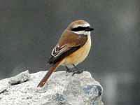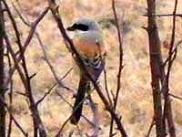 ![]() タカサゴモズ 遠目にもはっきりわかる白い腹と背中の美しい羽模様と色合い |