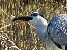 ![]() 服部霊園池でジョウビタキ♀ アオサギが魚を捕らえて、そのまま頭から丸呑み |