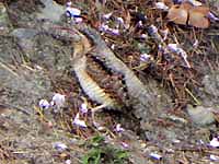 枯れ葉の中でじっと動かないノゴマ |