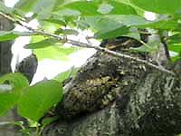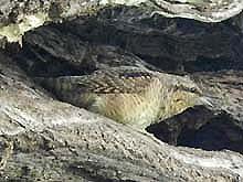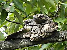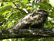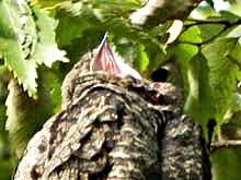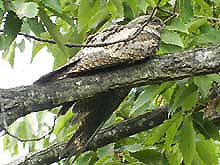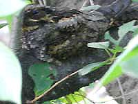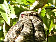 ネットでブログを見てびっくり。ヨタカが同じ場所に2日続けて居たなんて、信じられない。でも3日目は無理だろう、と諦めて居たが、ダメもとで行ったらまだご滞在中。わァ、なんという幸せ!聞くと既に5日目だとか。これは奇跡だぁ。そのヨタカ様、今日は最高のパフォーマンスを見せてくれた。身体を揺すり出したら姿勢を変えたり、位置をずらす合図。あくびや羽づくろい、正面直立の姿勢など、今迄見たことないヨタカのポーズがいっぱい。多分、これで、ヨタカを卒業できる・・・かな? | |