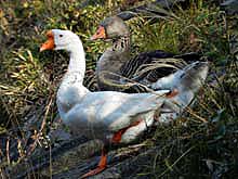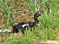 2011年12月18日(日) in岡山 アカハジロ居なかった 先般ヨタカを見に行ったときに今季も早々にアカハジロが入っていると誰かがいってたので、宮古島でお世話になった関東のMさんに知らせた。すぐに、ぜひ見に行きたいとの返事。遠方からとなればやはり確認するべしと青春十八切符を使って行ってみたら、ご多聞にもれず、ここでもカモが非常に少ない。で、本命は?居ない!あらら・・・。せっかく遠路を来たのだからと近くの池まで足を延ばしたら、シナガチョウの親子や、オシドリ・イカルチドリ・ニュウナイスズメなどにかろうじて慰められた。 (←丸山公園の池にシナガチョウの親子) |