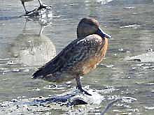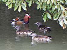 ![]() オシドリ♀ 後頭部に風のいたずら? 観察窓の正面にくつろいでいた オシドリ♂ |