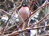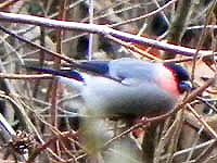 2011年3月2日(水) in六甲山 トレーニングハイクにて アカウソ 例の如く、またトレーニング。宝塚~六甲山頂~風吹岩まで来て、急に保久良神社で何か鳥が見れないかと思い付いて、下山道を変更した。カメラマンが来なくなった保久良神社はひっそりしていた。シロハラが驚いて逃げ、コジュケイがけたたましく鳴いて茂みに隠れた。そして、どこからかフィーフィーと鳥の声。ウソだ!見るとすぐ側の枯れ木の梢に10羽ほど止まっている。午後から雪になったため、空が暗く、時間的にも夕刻なので色が分からない。黒っぽい腹ばかり見えていたが、帰って写真を見ると、アカウソの雄のようだ。ただのウソは喉の赤さが目立つが、アカウソは腹全体が暗色にみえるのだ。期待していなかった分、嬉しかった。 |