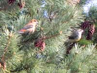 ずーっと居付いてくれたハギマシコ。おそらくこれが最後の名残りになるだろうと、またスタコラ山登り。多分来年以降、もうこんなチャンスには恵まれないと思うと、なんとも切ない・・・。群れから1羽の脱落者も出さないで、無事に北へ帰ってほしい。さよなら~、ありがとう~! | |
