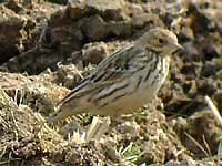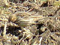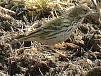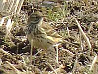 ![]() タヒバリの群れにたった1羽。判別が難しいが多分これがそのマキバタヒバリだろう。 |