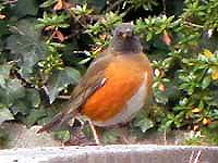 2011年10月19日(水) in大阪城 ノゴマ・キビタキ・ジョウビタキ→♀ばかり 先にノジコを見つけたのが10/9だった。その同じ個体だろうか、大阪城では2日前からノジコで大騒ぎ。2羽居るとも言われている。写真が撮れたらいいなと出かけたが、今日は姿を見れなかった。ミヤマホオジロの♀も居るらしく、いよいよ冬鳥本番の様相。同じ梅林でノゴマの♀の餌付け中。昨日の♂に引き続きちょっとついてる感じ。城内をウロウロしてジョウビタキの♀を発見。これも今季初もの。キビタキ♀は相変わらず多い。うん、今日は♀が圧倒的に優勢だね。 (←ジョウビタキ♀ 今季初) |