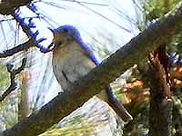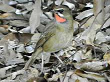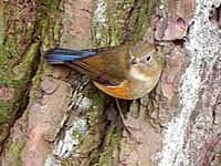 ![]() ノゴマ♀ 枝の後に潜んで様子伺い キビタキ♀ |