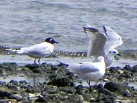毎年加古川ではズグロカモメが見られるが、頭が黒くなる夏羽はまだ見ていない。1週間前にブログで確認したので、また遅きに失するのを恐れながら、白内障の手術を明後日に控えて、最後の鳥見に出かけた。手術後は2週間ばかりおとなしくせざるを得ない。それはともかく、現地に着いても誰も居ず、鳥も見当たらない。とにかく粘るしかないと覚悟を決め、ウロウロ。蟹を食べるらしく、時々葦原辺りで飛び交うのが見えた。午後になって、ようやくいつもの中州に寄って来た。堤防から下りて近づいても、平気で目の前で飛び交っている。地元の人が来て、飛びものを撮れと言われた。やってみると意外と数枚撮れていた。わぁ、飛びもの大成功!ワンステップ上がったかな?手術後に乞うご期待! | |