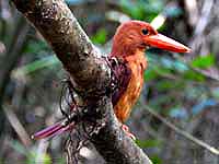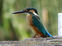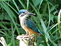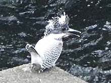 ![]() ヤマセミ♂ 写真では分かりにくいが、胸元が少し茶色味がかっている |