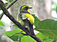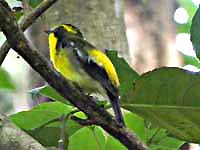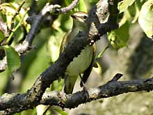 三島江でオウゴンチョウ♂(正しくはキンランチョウ?)が出たというので、ダメ元で行ってみた。先に♀が居た所から探したが勿論居ず、河原のグランドで詳しい場所を聞いたら、少し下流まで案内してもらえた。ラッキー。途中チョウゲンボウが大サービス。しかし本命は気配なく、キビタキ・ノビタキ、そしてキジの声で本日は終了。ま、一日楽しめました。 | |