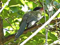 ![]() 霊園池にアオバト3羽(♂2・♀1) ♂は赤紫の羽が特徴 エナガ(服部緑地) |