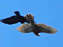 ![]() オオタカ 多勢のカラスに囲まれても平然 ホオジロガモ |