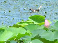本命の池で、イカルチドリ? 駅に戻る途中で、ニュウナイスズメの群れ |