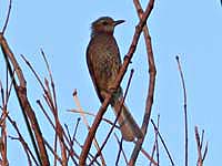 このところ暇さえあれば霊園池へ行きもう一度光線の良い状態でクイナを撮りたいと思うが、なぜかタイミングが合わない。仕方なくアメリカヒドリガモを撮ったり、ハイタカを当てずっぽうで撮ったりしていた。ふと霊園の木の枝に何か止まっているのに気づいた。どうせヒヨドリ・・?・・ツグミだッ!只のツグミだが今期は初見えで、やっと入ったか、と、何故かうれしい。 | |